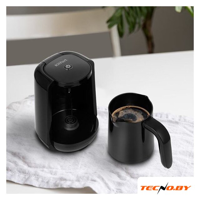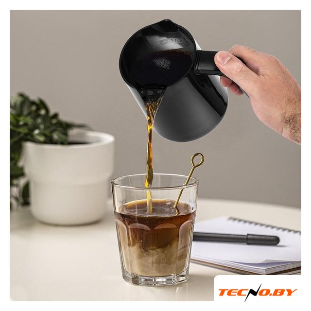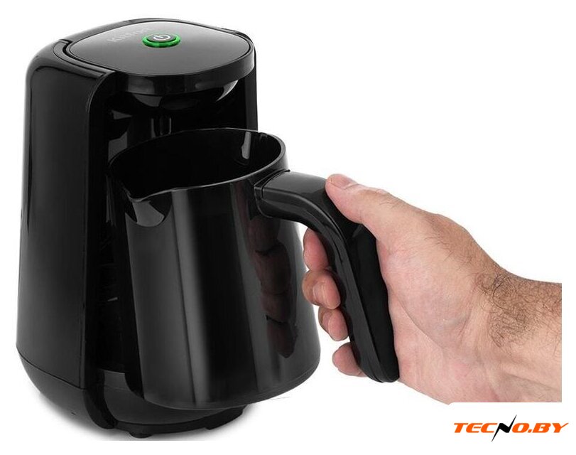 электрическая турка, 1000 Вт, корпус пластик/стекло, используемый кофе: молотый, цвет прозрачный/черный