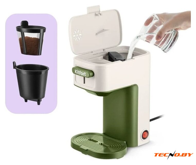 650 Вт, корпус металл/пластик, используемый кофе: молотый, цвет белый/нержавеющая сталь