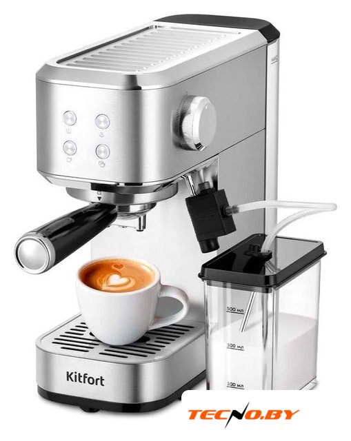 1400 Вт, корпус металл/пластик, капучинатор ручной, используемый кофе: молотый, цвет серебристый