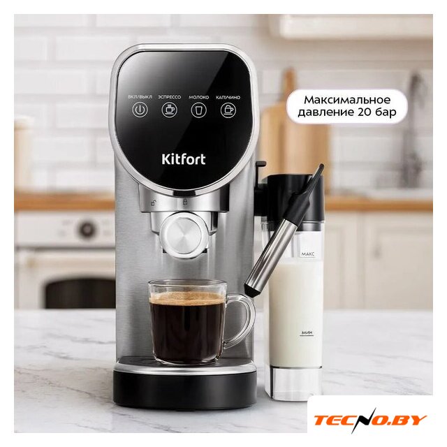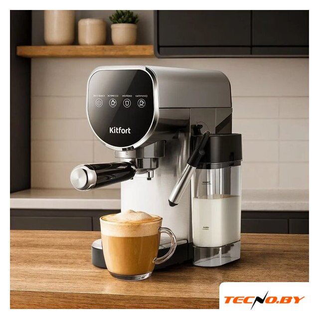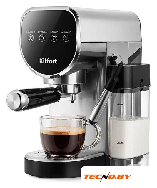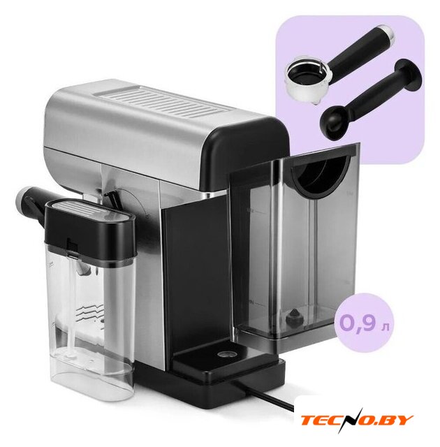 1350 Вт, корпус металл/пластик, капучинатор автоматический, используемый кофе: молотый, цвет серебристый/черный