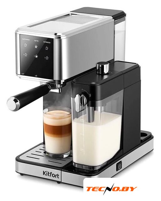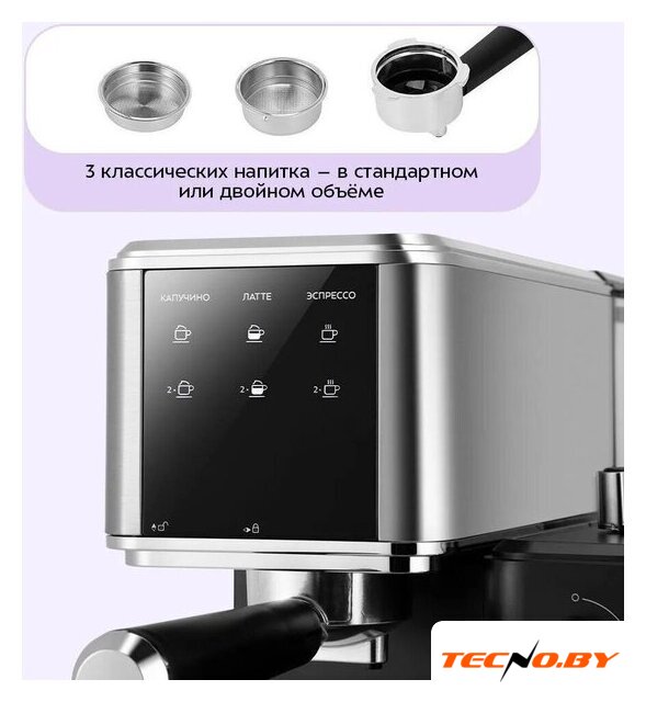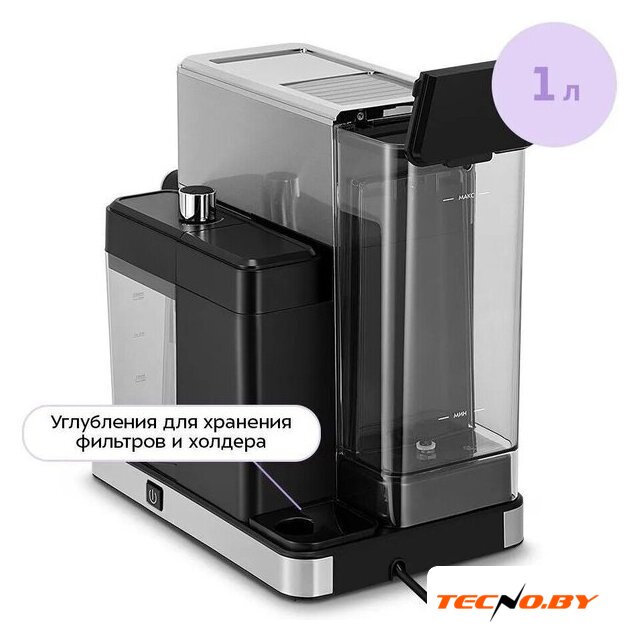 1350 Вт, корпус металл/пластик, капучинатор автоматический, используемый кофе: молотый, цвет серебристый/черный