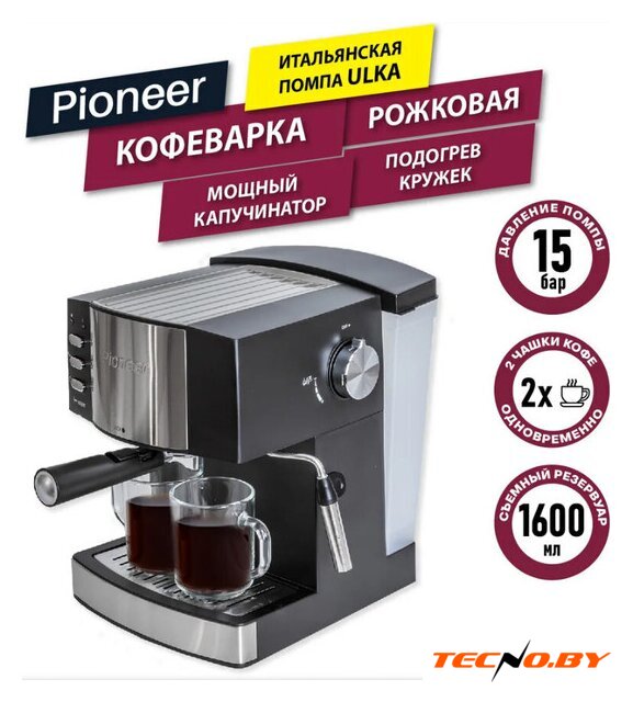 рожковая бойлерная кофеварка, 1100 Вт, корпус пластик, капучинатор ручной, используемый кофе: молотый, цвет черный