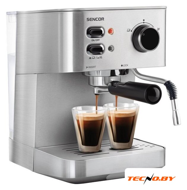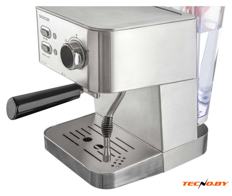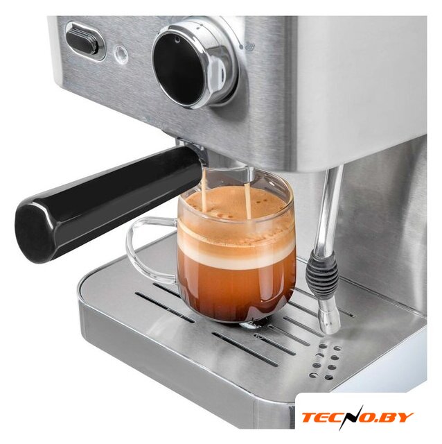 рожковая помповая кофеварка, 1500 Вт, корпус металл/пластик, капучинатор автоматический, используемый кофе: молотый, цвет нержавеющая сталь/черный
