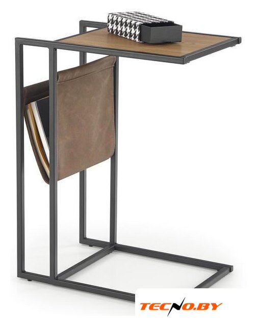 Столешница из высококачественного МДФ выполнена в благородном коричневом цвете, который прекрасно сочетается с черными стальными опорами. Такое цветовое решение добавляет изделию не только визуальную привлекательность, но и универсальность, позволяя этому столику вписаться в разнообразные интерьерные стили.