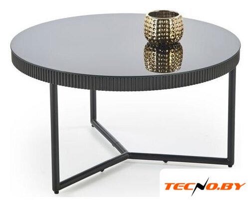 журнальный столик, 700x700 мм, высота 430 мм, материал: металл (столешница), стекло (опоры), золотистый