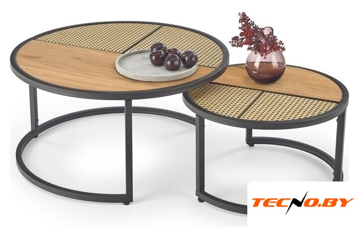 Журнальный столик Halmar Garmina — это идеальное сочетание стиля и функциональности. С его круглой формой и невероятно привлекательным оттенком «дуб золотой/черный», этот столик моментально привлекает внимание и станет центральным элементом любого интерьера. Сочетание коричневой ротанговой столешницы с черными опорами создает неповторимый контраст и придает элегантности общему облику.