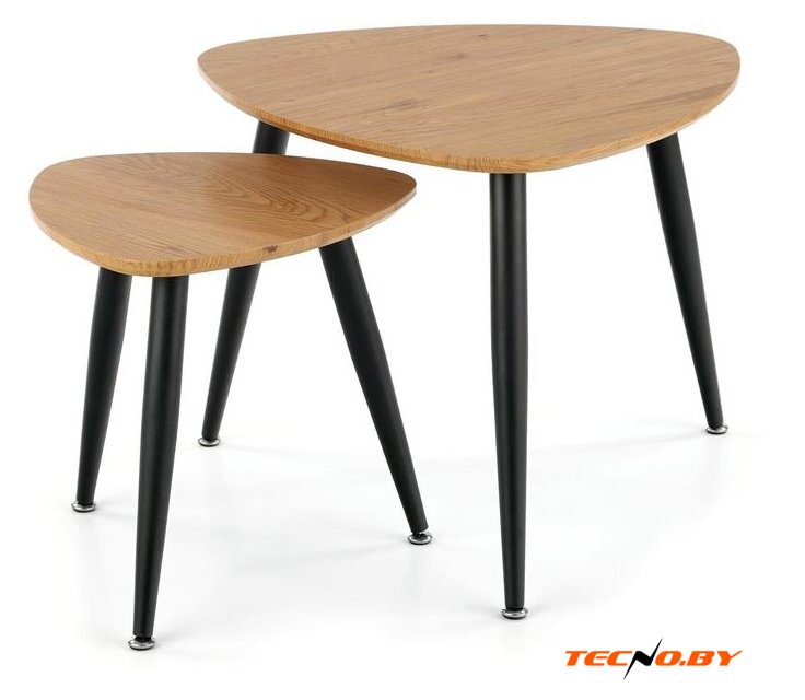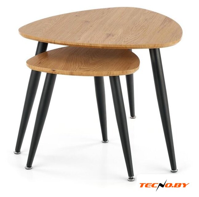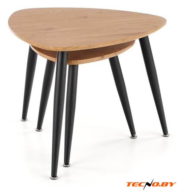 Журнальный столик Halmar Nicea 2 сочетает в себе изысканную простоту и оригинальность форм. Этот набор из двух столов отличается эстетически привлекательным сочетанием природных оттенков: столешница выполнена в золотисто-дубовом цвете, а опоры окрашены в элегантный черный. Такой дизайн прекрасно впишется как в классический, так и в современный интерьер, добавляя изюминку вашему дому или офису. 🏡