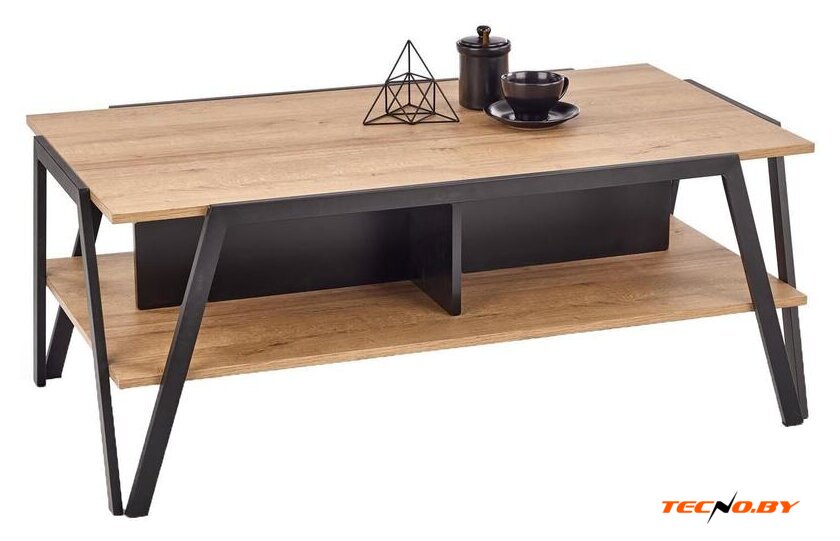 Журнальный столик Halmar Volta 113x63 (дуб золотой/черный) воплощает изысканность и минимализм, которые идеально подойдут для вашего интерьера. 🎨 Столешница из МДФ в цвете дуб золотой создает теплую атмосферу, а черные стальные ножки добавляют нотку современности, создавая стильный контраст.