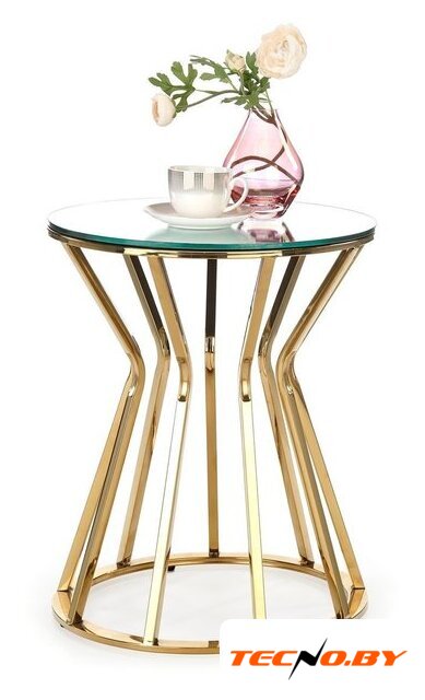 журнальный столик, круглая форма, 820×820 мм, высота 400 мм, материал: стекло (столешница), окрашенная сталь (опоры)