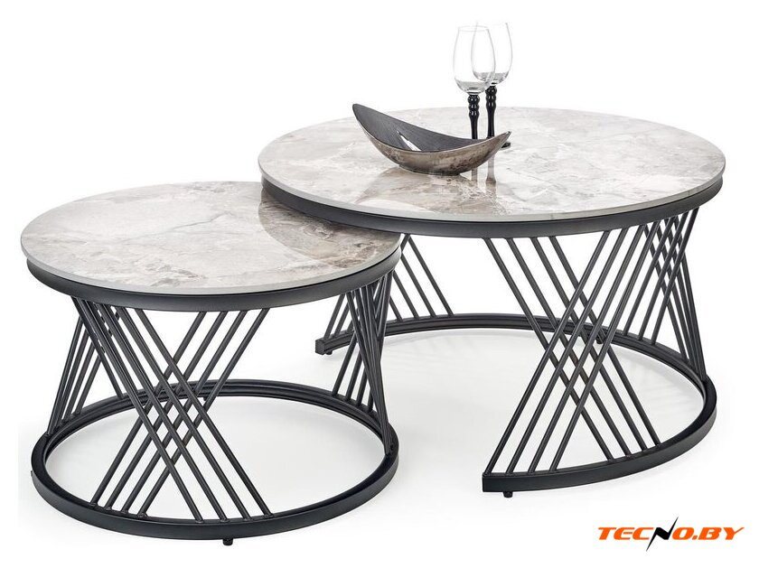 Журнальные столики Halmar Flamingo — это идеальное сочетание изящества и современного дизайна. Они привносят в ваш интерьер атмосферу роскоши благодаря искусно выполненной столешнице из стекла с имитацией серого мрамора. Два круглых столика будут прекрасно смотреться в гостиной или в любой другой комнате, где вы решите разместить этот стильный акцент.