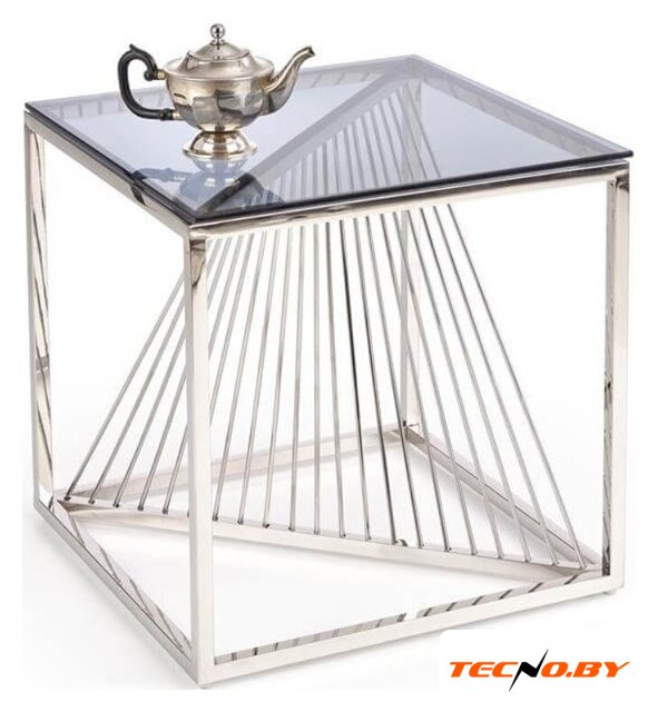 журнальный столик, 800x800 мм, высота 450 мм, материал: стекло (столешница), хромированная сталь (опоры), золотистый