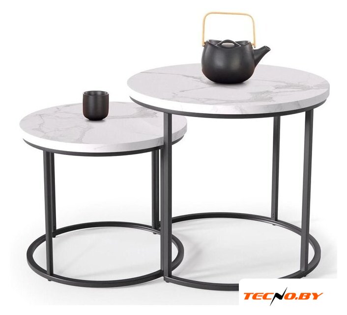журнальный столик, набор 2 шт, 800x800 мм, высота 480 мм, материал: ЛДСП (столешница), окрашенная сталь (опоры), черный