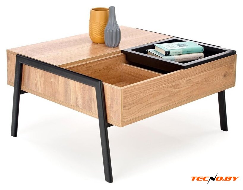 Журнальный столик Halmar Podium сочетает в себе классические нотки и современные акценты, что делает его идеальным дополнением к любому интерьеру. 🎨 Его прямоугольная форма и элегантный дизайн выполнены из высококачественных материалов, таких как ЛДСП для столешницы и окрашенная сталь для опор. Натуральный оттенок дуба в комбинации с черным цветом добавляет изысканность и утонченность в любое жилое пространство.