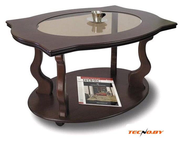 журнальный столик, 400x400 мм, высота 500 мм, материал: МДФ (столешница), дерево (опоры), коричневый
