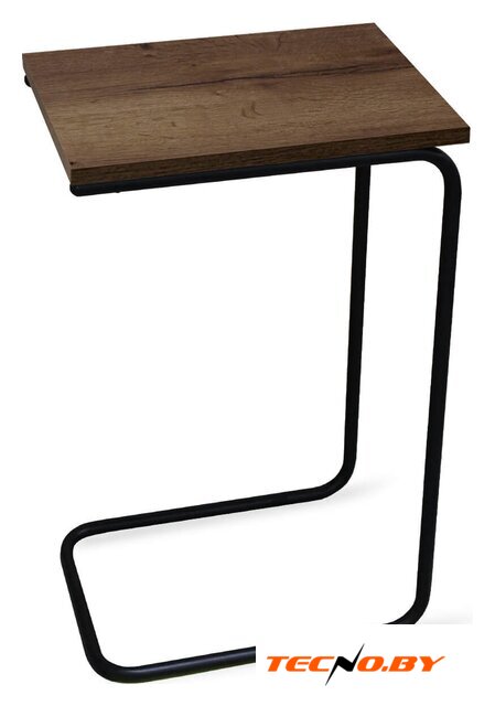 Для производства столешницы использован высококачественный ЛДСП, который славится своей прочностью и эстетичностью. Коричневый цвет столешницы прекрасно гармонирует с черными металлическими опорами, выполненными из окрашенной стали. Использование таких материалов гарантирует долговечность и стойкость изделия к внешним воздействиям.