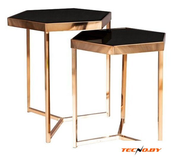 Столешница изготовлена из прочного закаленного стекла, что обеспечивает долговечность и устойчивость к износу. Золотистые опоры добавляют конструкции стабильности, придавая ей дополнительную уверенность и прочность. Это гарантия того, что вашим столикам не страшны ни время, ни интенсивное использование.