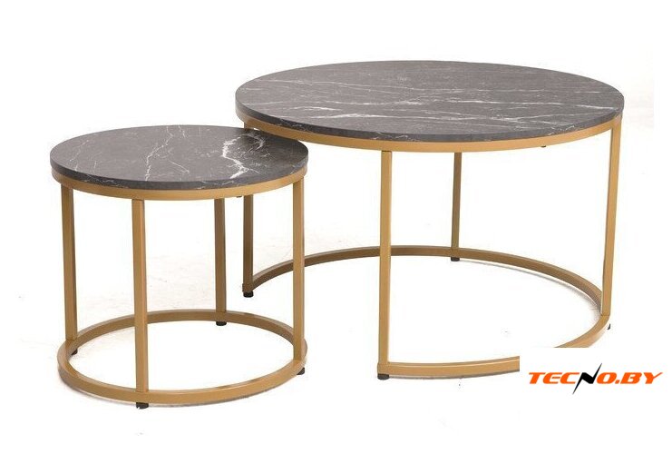 Журнальный столик Signal DION — это воплощение современного стиля и утонченной элегантности. В набор входят два круглых столика, которые станут идеальным дополнением интерьера вашей гостиной. Они привлекают внимание своим зимним черным мраморным оттенком столешницы, который великолепно контрастирует с золотистыми металлическими опорами, добавляя изысканность и шик вашему пространству.