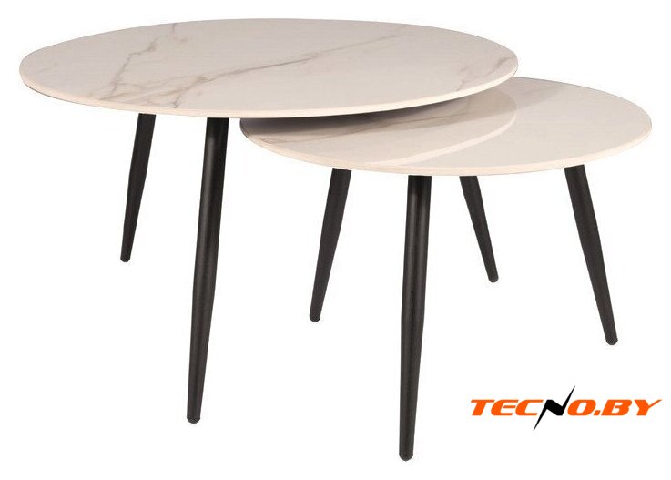 журнальный столик, набор 2 шт, 80x80 мм, высота 42 мм, материал: керамика (столешница), окрашенная сталь (опоры), белый/черный