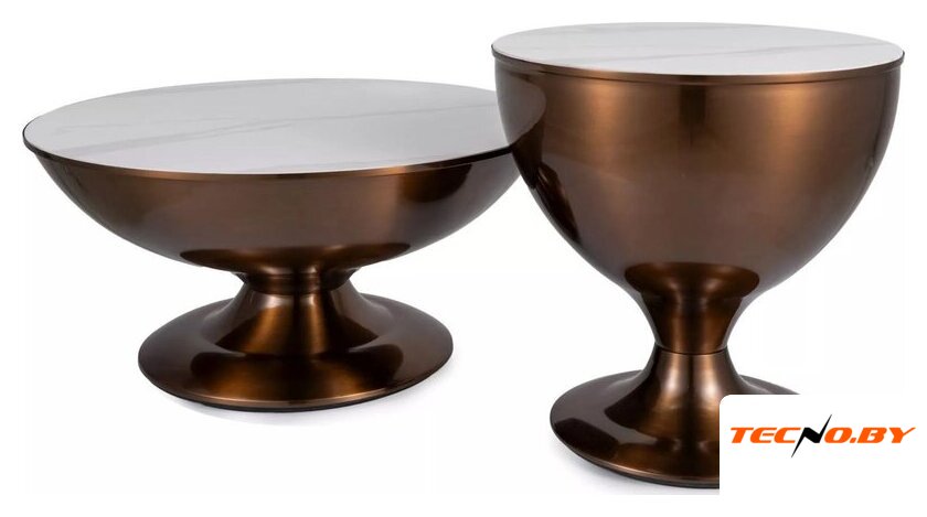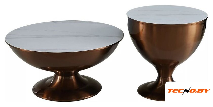 журнальный столик, набор 2 шт, высота 410 мм, материал: керамика (столешница), сталь (опоры), белый