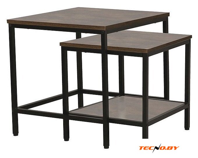 журнальный столик, набор 2 шт, высота 400 мм, материал: МДФ/шпон (столешница), сталь (опоры), коричневый
