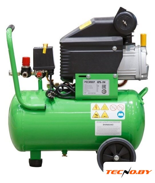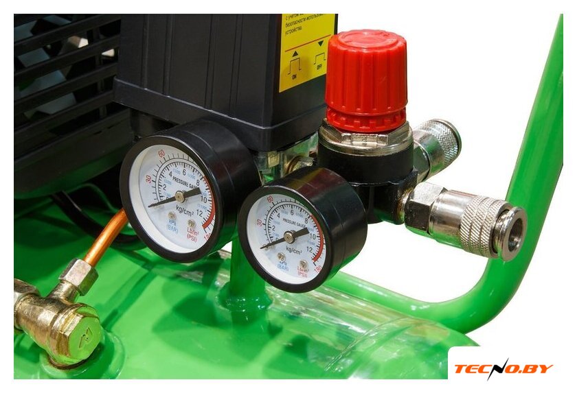 ECO AE-251-3 оборудован ресивером объемом 24 литра, что позволяет хранить достаточное количество сжатого воздуха для длительных работ без необходимости частых остановок. Зеленый цвет корпуса не только делает его заметным, но и придает эстетическую привлекательность. Прочный и надежный, компрессор готов к интенсивным эксплуатационным условиям.