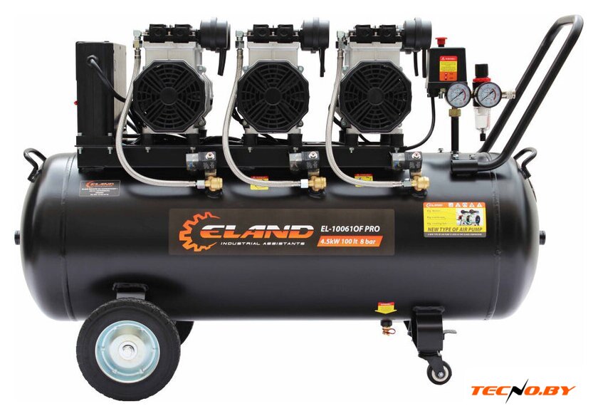 Компрессор ELAND EL-10061OF PRO представляет собой мощную и надежную машину, идеально подходящую для использования в различных сферах. Это поршневой компрессор, оснащенный электрическим двигателем, который обеспечивает стабильную и эффективную работу. Одна из ключевых характеристик данного устройства — это безмасляная смазка. Она значительно упрощает обслуживание компрессора и минимизирует риск загрязнения компрессируемого воздуха.