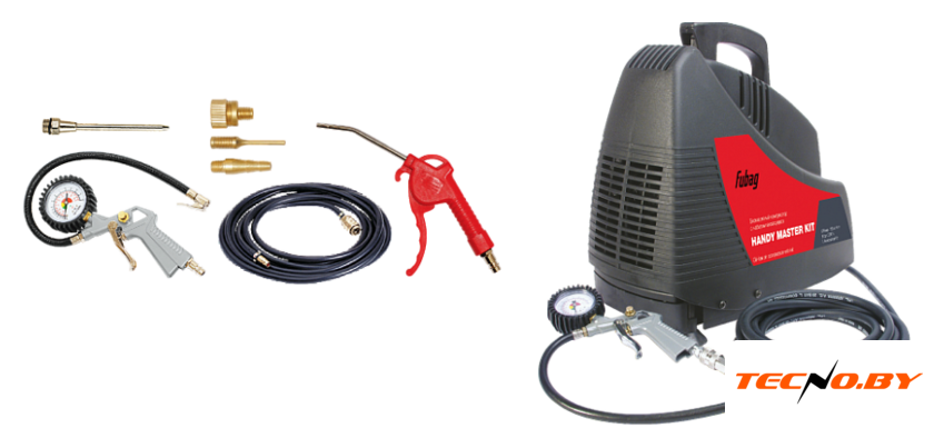 Fubag Handy Master Kit поставляется с набором из 5 предметов, обеспечивающих универсальность и удобство использования. Вы можете сразу начать работу благодаря всем необходимым насадкам и аксессуарам в комплекте. Эти дополнительные компоненты расширяют спектр применения компрессора, предоставляя вам еще больше возможностей для выполнения различных задач.