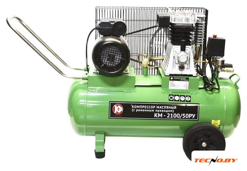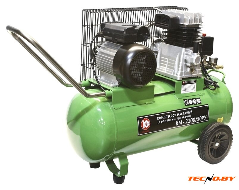 Калибр КМ-2100/50РУ оснащен масляной системой смазки и ременной передачей. Объемный ресивер емкостью 50 литров позволяет сохранять значительное количество сжатого воздуха, что особенно полезно при непрерывной работе. Зеленый цвет корпуса не только выделяет прибор внешне, но и устойчив к различным внешним воздействиям. ☘️
