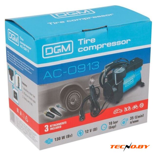 максимальное давление: 10 атм, непрерывная работа: 15 мин, уровень шума: 72 дБ, длина шланга: 0.7 м, длина кабеля питания: 3 м