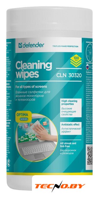 для монитора, не оставляет разводов/безворсовый материал/антистатический эффект, 100 салфеток
