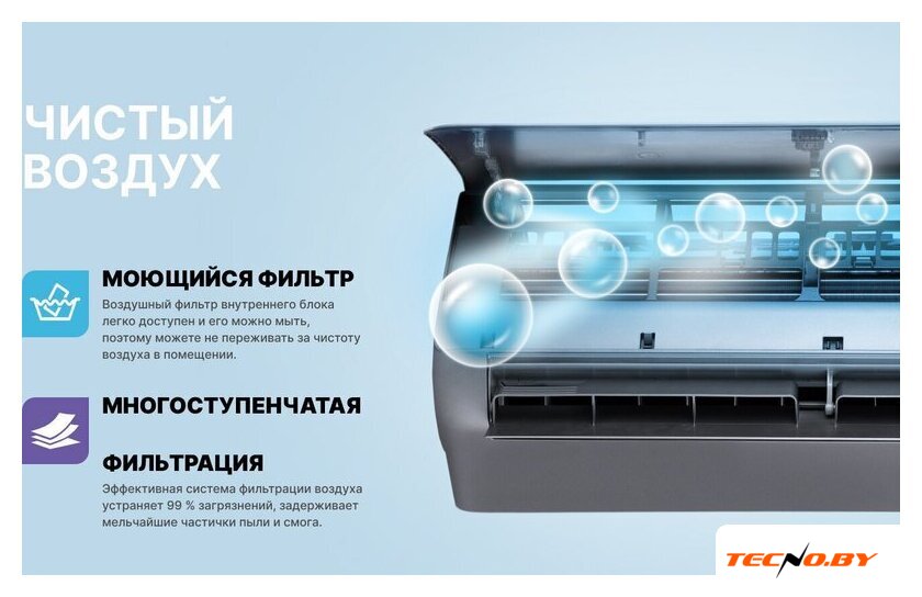 сплит-система, инвертор, мощность охлаждения 2.14 кВт, мощность обогрева 2.6 кВт, обслуживаемая площадь 20 м², шум 22-46 дБ, Wi-Fi: есть