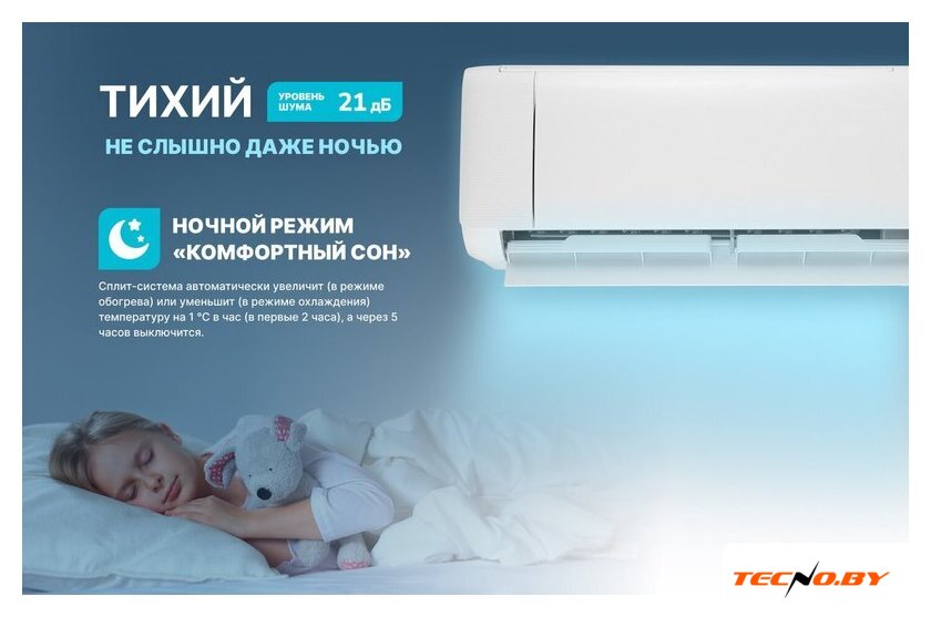 сплит-система, мощность охлаждения 2.55 кВт, мощность обогрева 2.6 кВт, обслуживаемая площадь 24 м², шум 23.5-32 дБ, Wi-Fi: нет