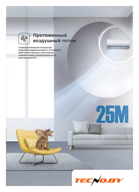 сплит-система, инвертор, мощность охлаждения 2.5 кВт, мощность обогрева 3.2 кВт, обслуживаемая площадь 25 м², шум 19-40 дБ, Wi-Fi: поддерживается, модуль приобретается отдельно