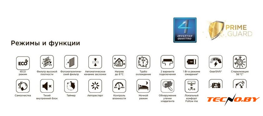 мощность охлаждения 3.52 кВт, мощность обогрева 3.66 кВт, обслуживаемая площадь 35 м²