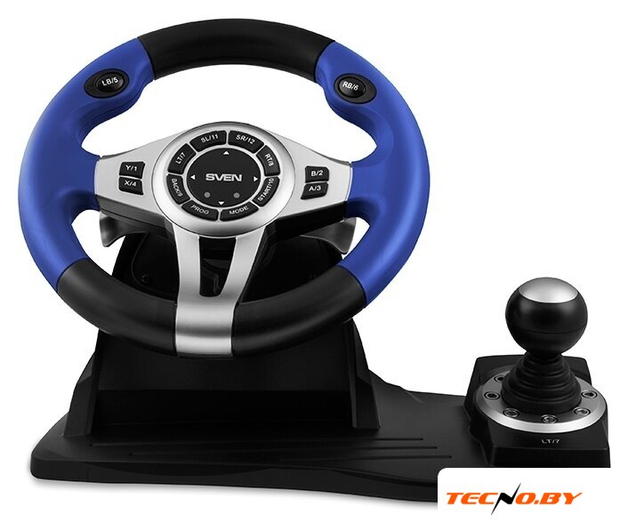 руль для PC, 12 кнопок, педали, переключение передач, 0 аналоговых джойстиков, обратная связь, проводной