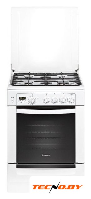 газовая панель + электрический духовой шкаф, газ-контроль конфорок, поверхность: эмалированная сталь, крышка из эмалированной стали, управление электронное, таймер электронный, размеры (ШхГхВ): 60x60x85 см, цвет белый
