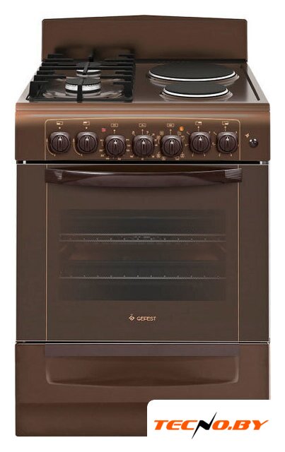 газ+электро панель + электрический духовой шкаф, поверхность: эмалированная сталь, крышка из эмалированной стали, управление механическое, таймер механический, размеры (ШхГхВ): 60x60x85 см, цвет коричневый