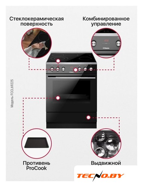 HiLight панель + электрический духовой шкаф, поверхность: cтеклокерамика, энергопотребление A, управление механическое, без таймера, размеры (ШхГхВ): 60x60x85 см, цвет серый