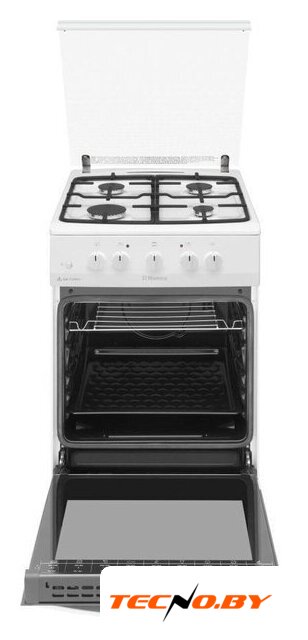 газовая панель + электрический духовой шкаф, газ-контроль конфорок, поверхность: эмалированная сталь, крышка из эмалированной стали, управление механическое, таймер электронный, размеры (ШхГхВ): 50x58.5x85 см, цвет белый