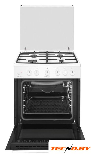 В комплекте с плитой вы найдёте эмалированный глубокий противень и решётку для гриля. Дверца духового шкафа открывается откидным методом, а внутри есть освещение для удобства визуального контроля. В нижней части плиты расположился выдвижной ящик для хранения посуды и принадлежностей, что помогает поддерживать порядок на кухне.
