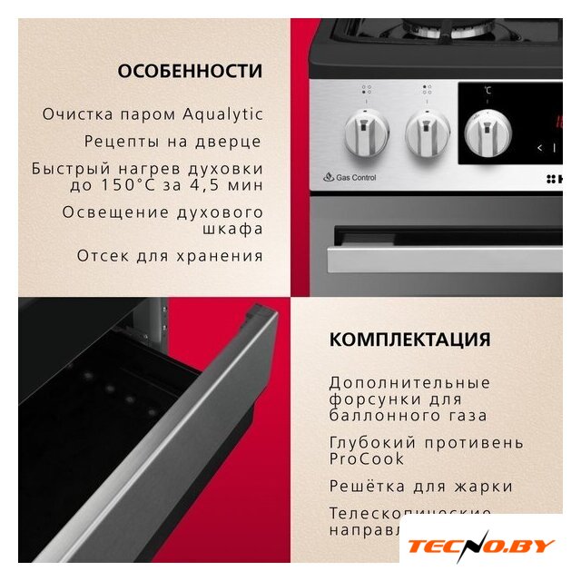 газовая панель + электрический духовой шкаф, газ-контроль конфорок, поверхность: закаленное стекло, энергопотребление A, управление электронное, таймер электронный, размеры (ШхГхВ): 60x60x85 см, цвет коричневый