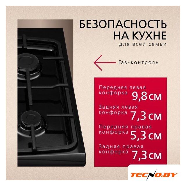 газовая панель + электрический духовой шкаф, газ-контроль конфорок, поверхность: закаленное стекло, управление электронное, таймер электронный, размеры (ШхГхВ): 60x60x85 см, цвет черный