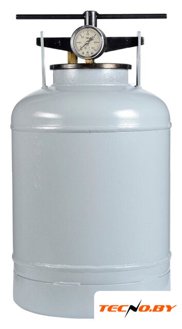 24 л, углеродистая сталь, максимальное давление 0.39 атм, клапан сброса давления/манометр/термометр, высота 53 см, диаметр 30 см