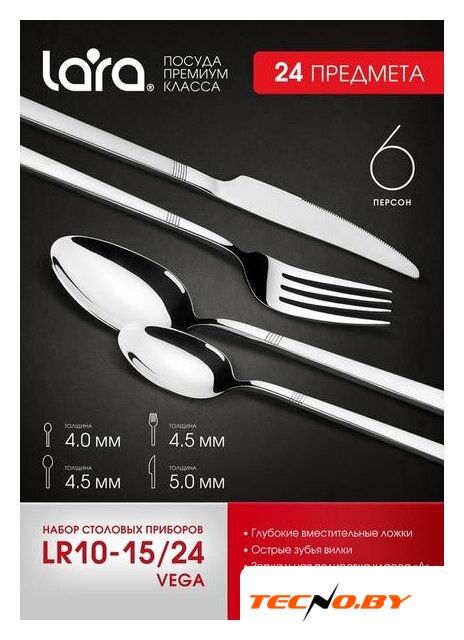 | Состав столового набора | вилка столовая, ложка столовая, ложка чайная, нож столовый |