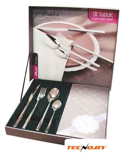 набор столовых приборов, 24 прибора на 6 персон: вилка столовая/ложка столовая/ложка чайная/нож столовый, рабочая часть: нержавеющая сталь, ручка: нержавеющая сталь, пригодность для посудомойки, коробка для хранения в комплекте
