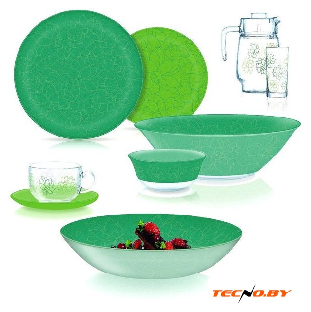 30 предметов для 6 персон, стекло, цвет белый/зеленый