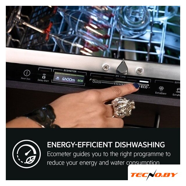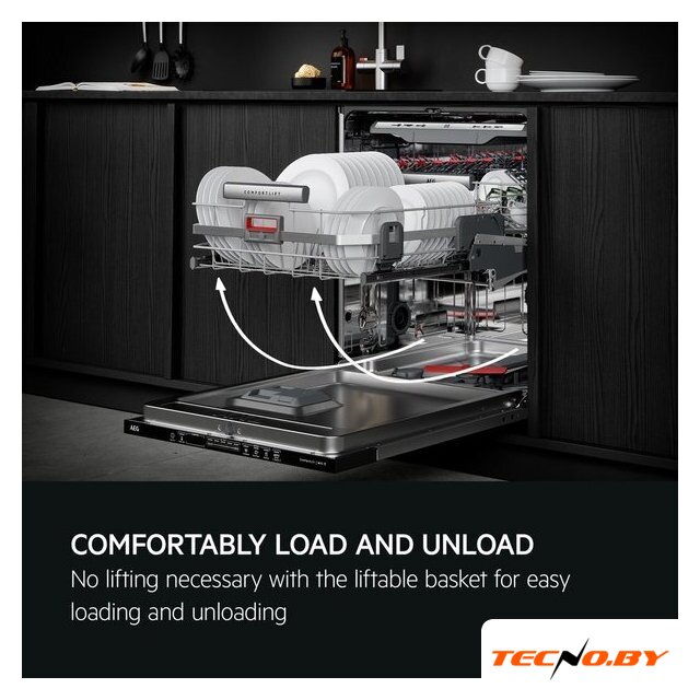 AEG FSK94858P оснащена защитой от протечек, а также датчиком чистоты воды, чтобы ваше спокойствие было на первом месте. Внутреннее освещение обеспечивает видимость, а третий короб для приборов добавляет комфорта в использование кухни.