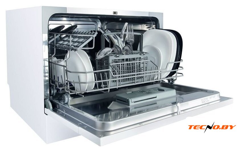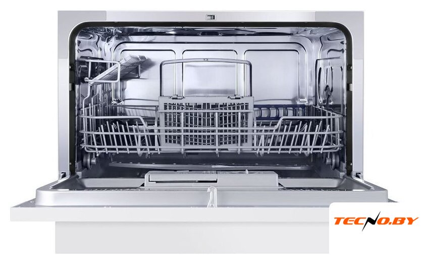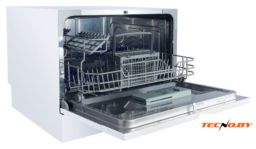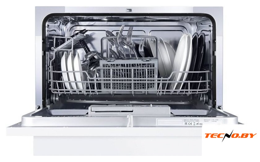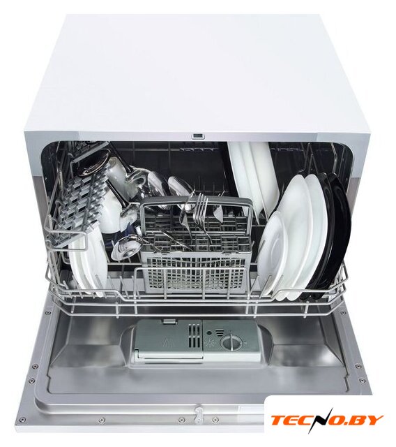 загрузка на 6 комплектов посуды, электронное управление, 6 программ, белый цвет, сушка: конденсационная, индикация на полу: нет