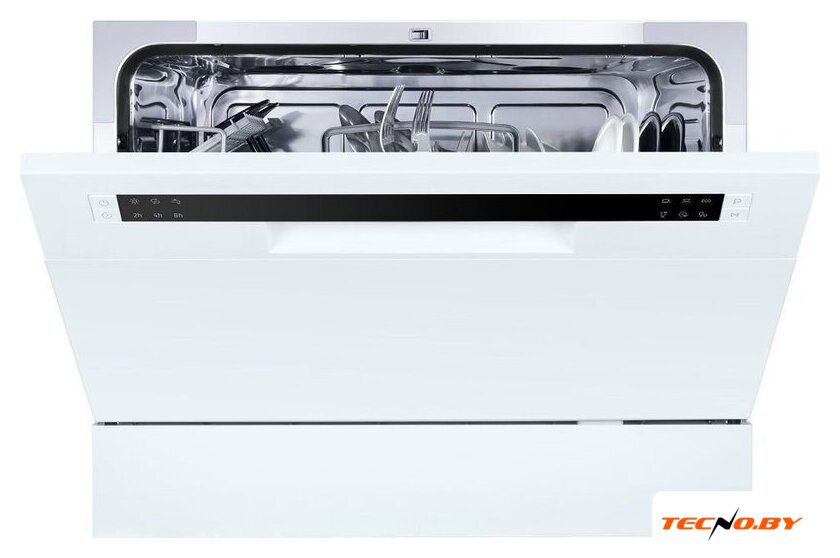 загрузка на 6 комплектов посуды, сенсорное управление, 5 программ, белый цвет, сушка: стандартная (конденсация), индикация на полу: нет
