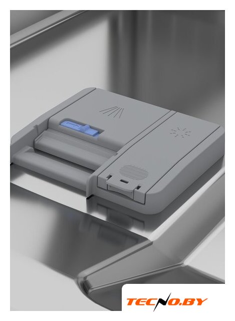 Модель оборудована сенсорной панелью с LED-индикацией. На полу отображается луч, показывающий статус работы машины. Также предусмотрены индикаторы отсутствия соли и ополаскивателя, а звуковой сигнал уведомляет о завершении цикла. Таймер отложенного старта до 9 часов позволяет запрограммировать запуск в удобное время, что делает процесс мойки ещё более комфортным.